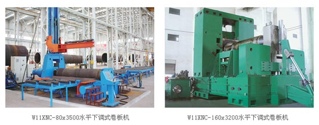 W11XNC系列水平下調式卷板機,三輥均為主動輥,上輥的升降和下輥的水平移動為液壓驅動,主油缸下置式,同步由計算機控制,同步精度±0.15mm。該設備結構緊湊,外形尺寸小,卷制制品精度高,特別使用于冷、熱卷卷板機。
