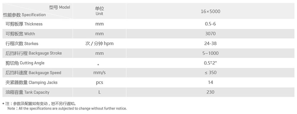 QC12K-16×5000數控液壓剪板機性能特點: ●最新設計的外形結構,大幅提高機身強度; ●采用伺服電機與油泵結合的控制系統,可使工作效率提高10%; ●伺服電機控制的液壓系統可降低機床工作等待時的噪音和能耗,能耗降低30%以上,同時大大提高液壓元件的使用壽命。